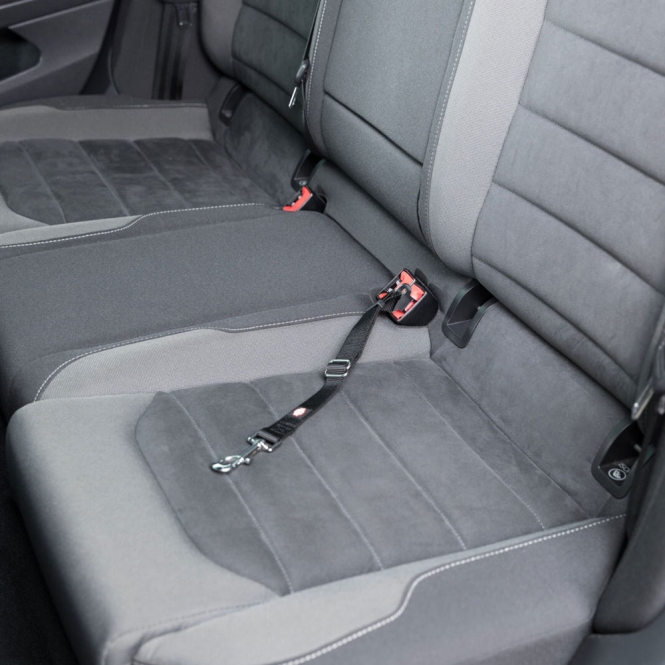 Verhindert, dass sich das Tier im Fahrzeug frei bewegt.