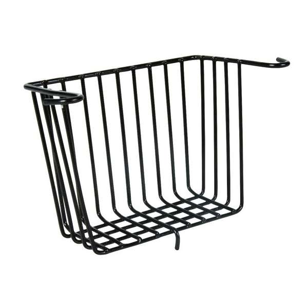 Raufe aus schwarzem pulverbeschichtetem Metall zum Einhängen in den Käfig. Zum Befüllen mit Heu, Gräsern etc. Schützt das Futter vor Kot und Urin.